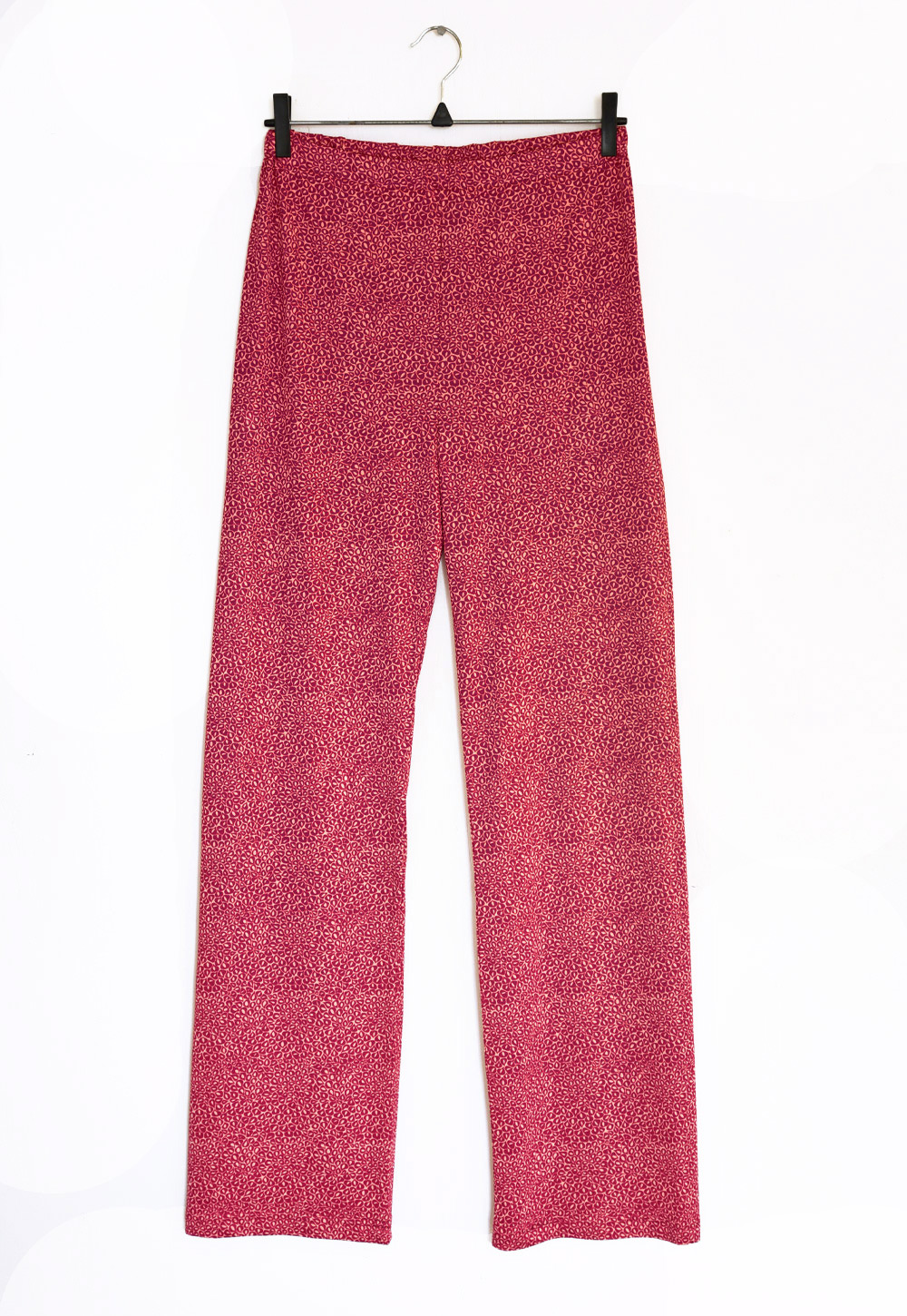 Vid byxa med resår i midjan. Tygkvalitet silkestrikå 63 % viskos och 37 % bomull. Maskintvätt 40 grader.